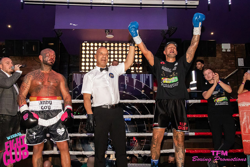 Penultimate fight of the night pitted Birkenhead’s debuting Dava Wilko against Nottingham’s Andy ‘Bad Boy’ Goy (0-6-0).