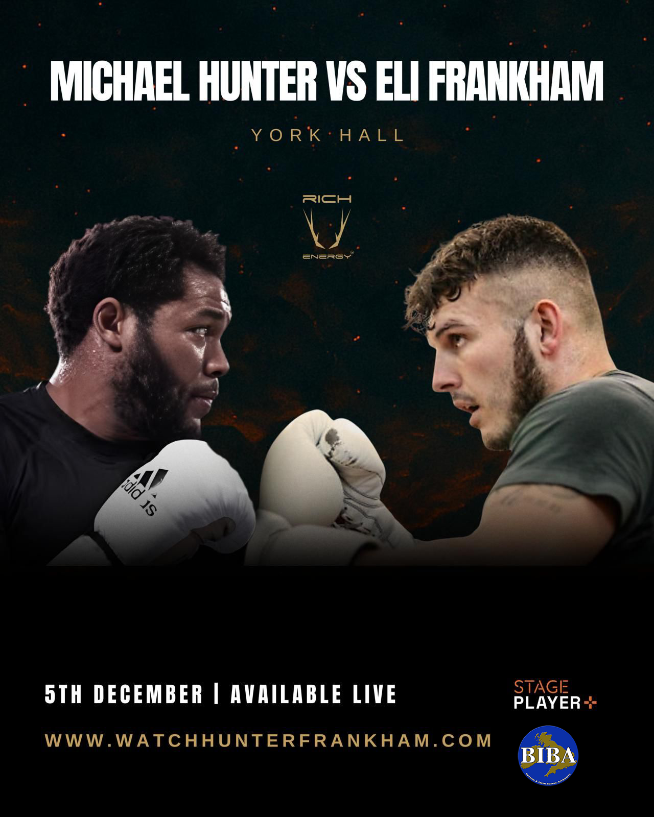 Hunter vs Frankham: Heavyweight showdown streams live worldwide on StagePlayer+ this Friday 5 December 2025 from 6.00pm – broadcast times and full fight card confirmed